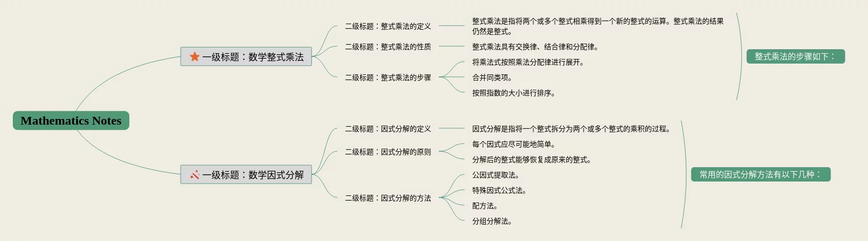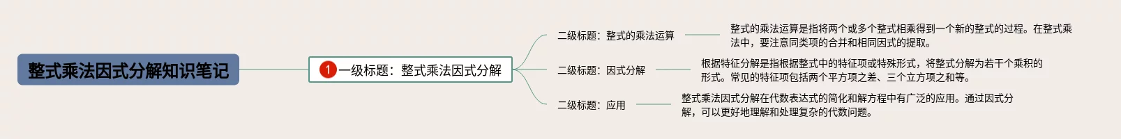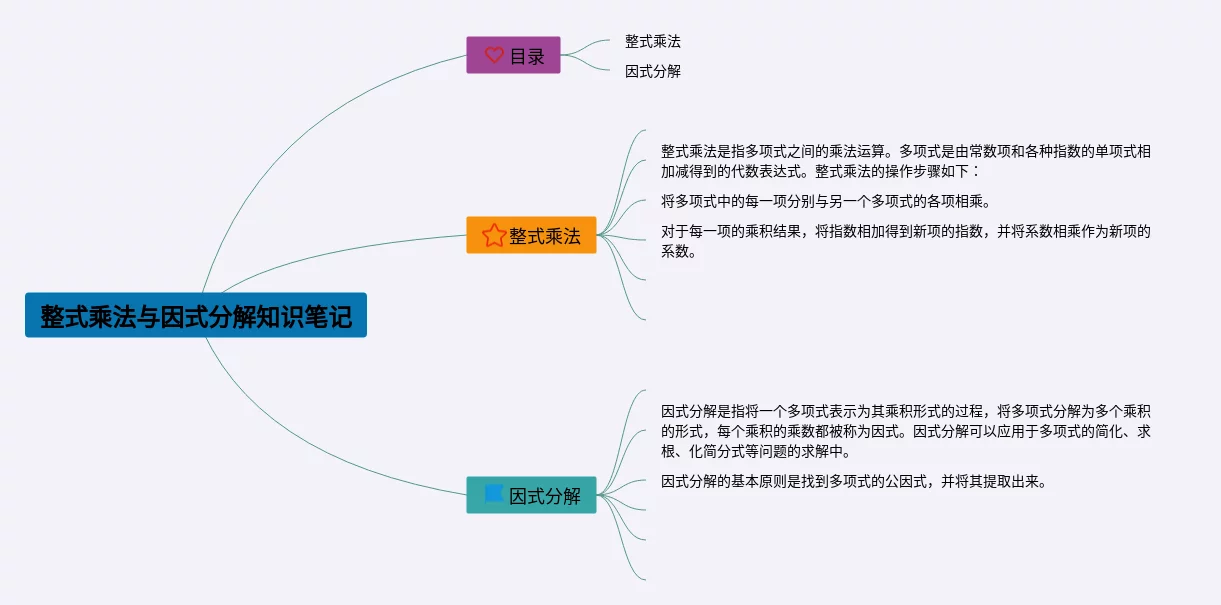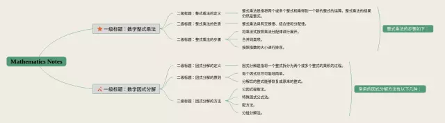 21张整式乘法与因式分解思维导图图片汇总,整式乘法与因式分解思维导图图片,内容涵盖一级标题整式乘法因式分解、二级标题整式的乘法运算、二级标题因式分解、二级标题应用等4个要点,21张附打印高清版,每张思维导图都非常简单,每张图片均附打印高清版。