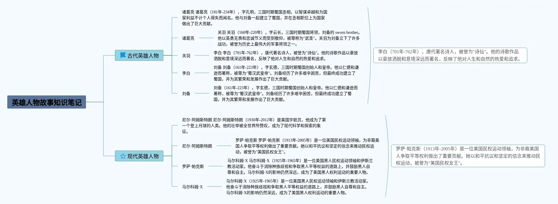 关于英雄人物的思维导图(20张附打印高清版)