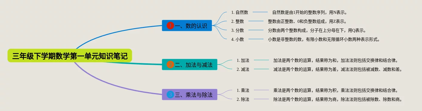25张三年级下学期数学第三单元思维导图合集,三年级下学期数学第三单元思维导图,内容涵盖1. 数的认识、2. 两位数的认识、3. 两位数的比较、4. 十位数的认识、5. 数字的拆分与组合等8个方面,25张附打印高清版,每张思维导图都非常简单,每张图片均附打印高清版。