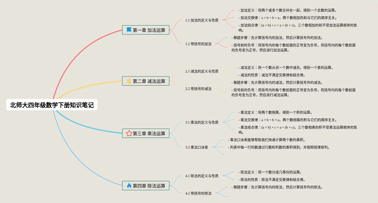 四年级下册数学第一单元思维导图北师大(20张值得收藏)