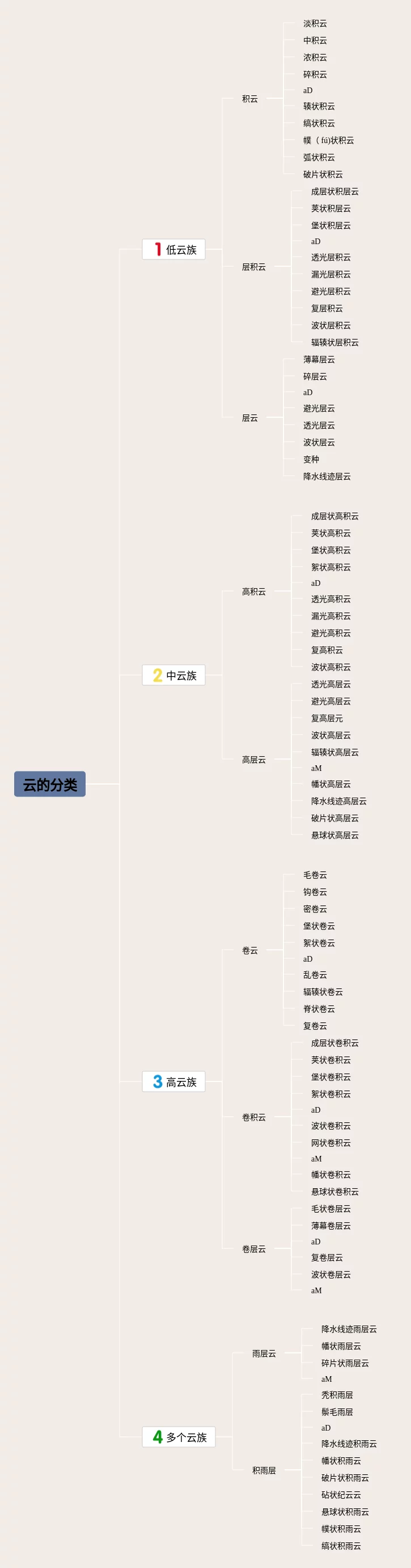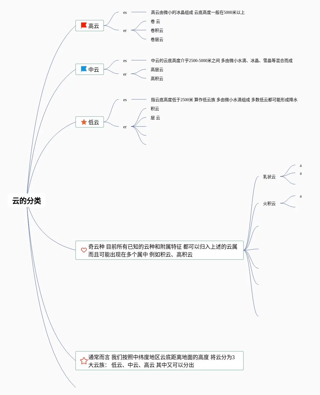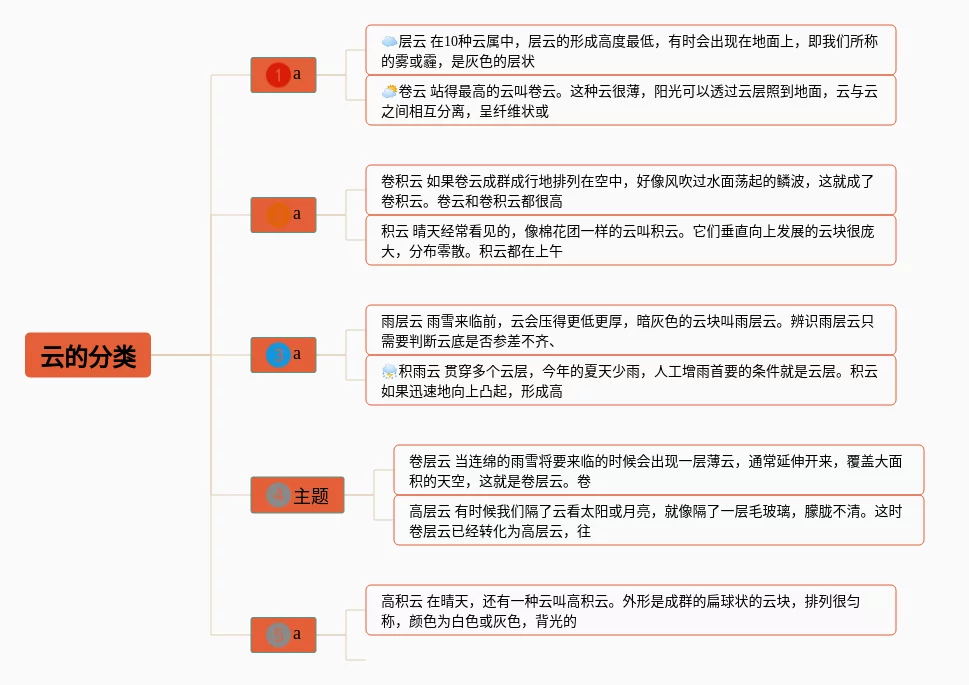 24张云的思维导图汇总,云的思维导图,内容涵盖低云族、中云族、高云族、多个云族等4个要点,24张高清晰可打印,每张思维导图都非常简单,每张图片均高清晰可打印。