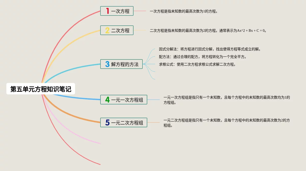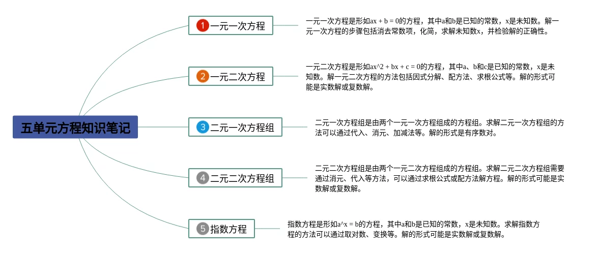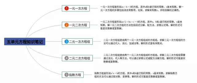 21张五单元方程思维导图汇总,五单元方程思维导图,内容涵盖一元一次方程、解一元一次方程、一元二次方程、解一元二次方程等4个要点,21张精选版,每张思维导图都非常简单,每张图片均精选版。