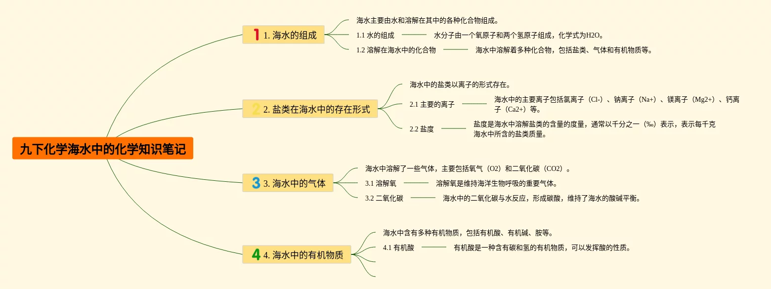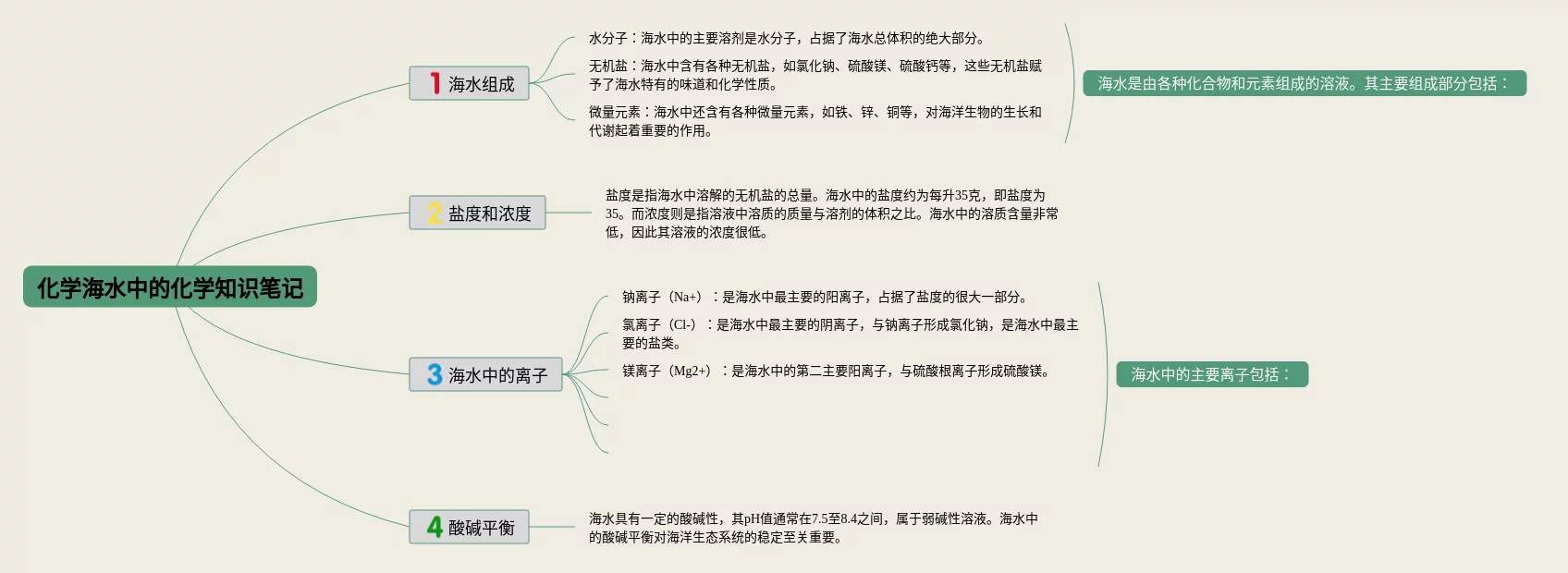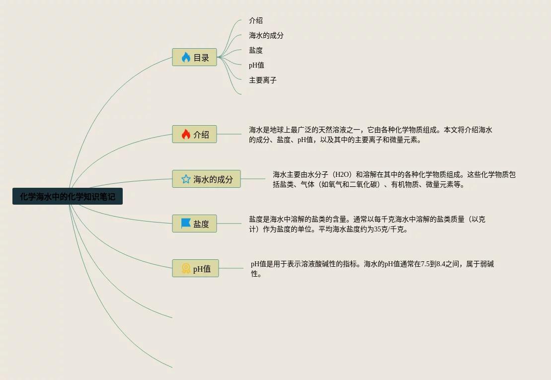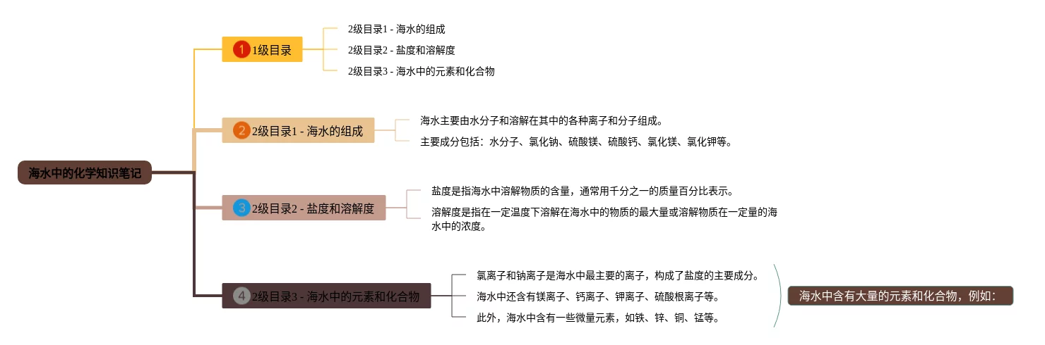 21张九年级海水中的化学思维导图汇总,九年级海水中的化学思维导图,内容涵盖目录、介绍、海水的成分、盐度、主要离子等6个部分,21张精选版,每张思维导图都非常清晰,每张图片均精选版。