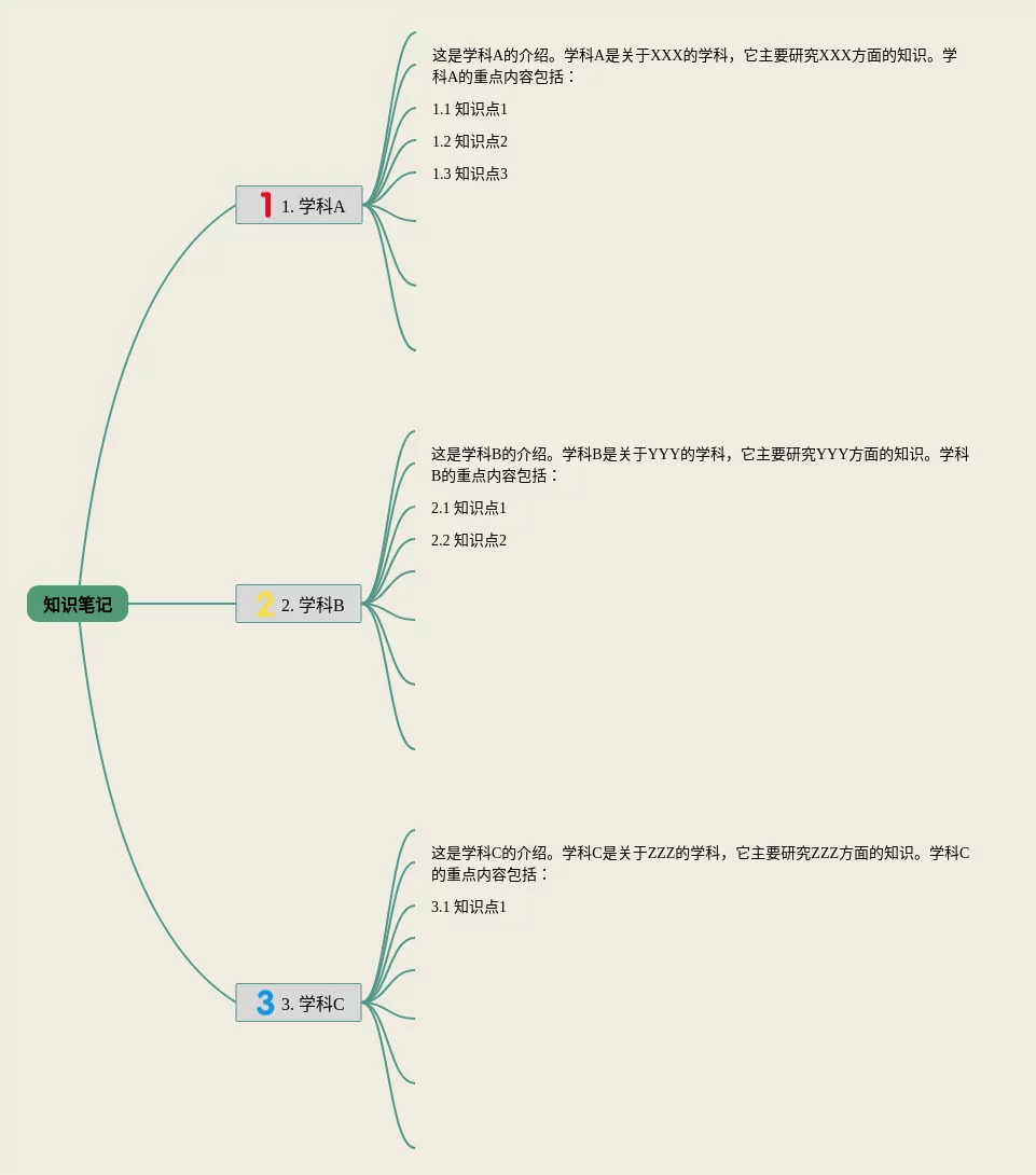 23张目录自动生成思维导图合集,目录自动生成思维导图,内容涵盖1. 学科A、2. 学科B、3. 学科C等3个部分,23张高清晰可打印,每张思维导图都非常漂亮,每张图片均高清晰可打印。