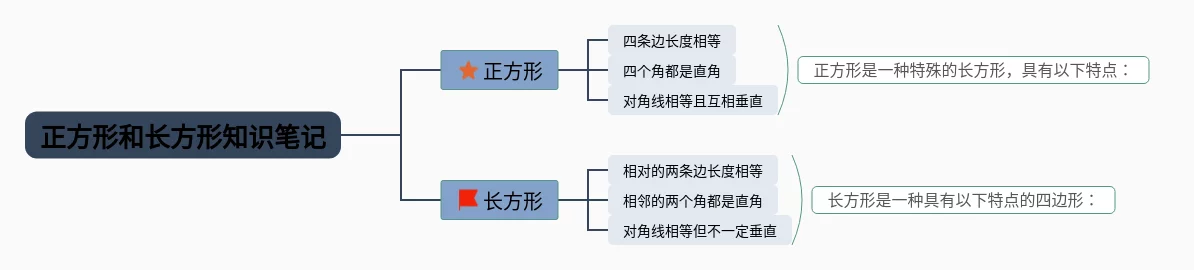 关于长方形正方形的思维导图(21张高清晰可打印)