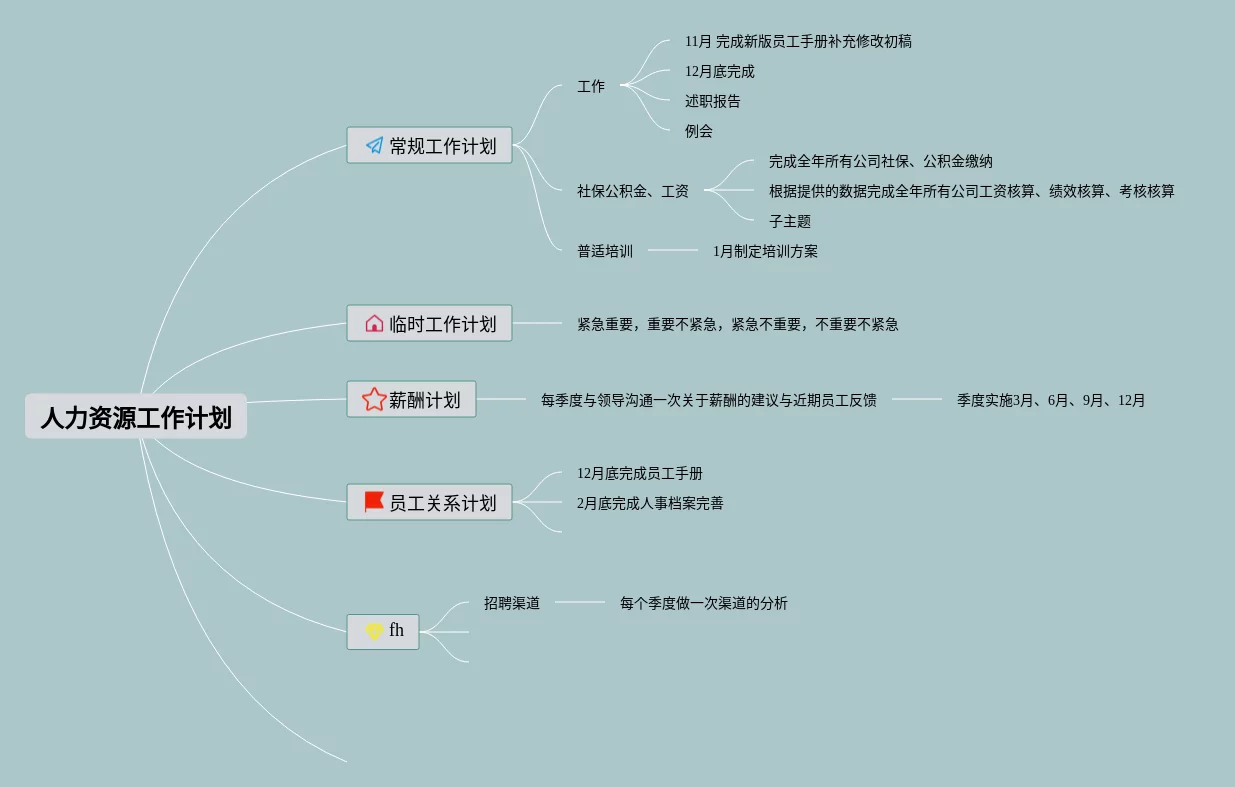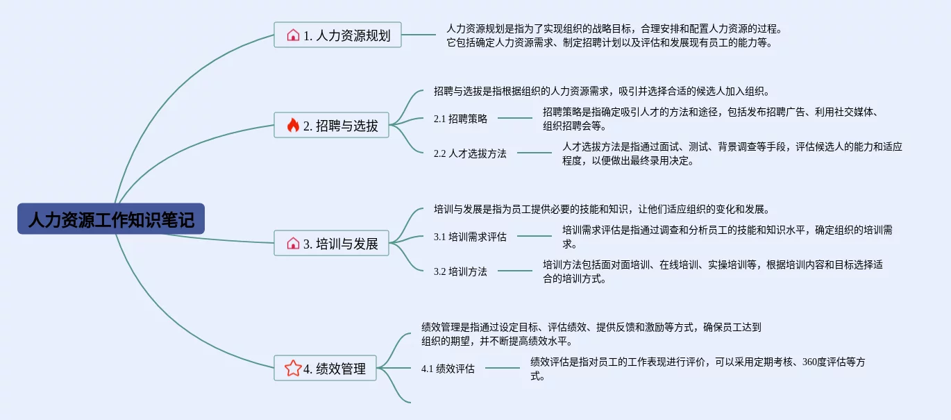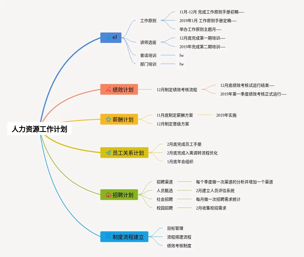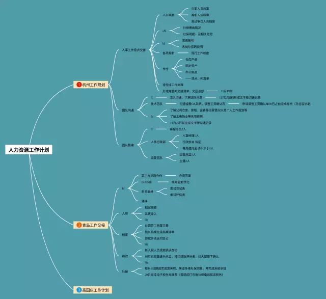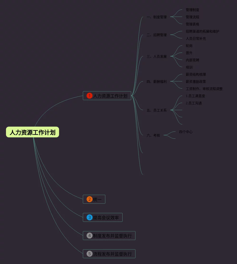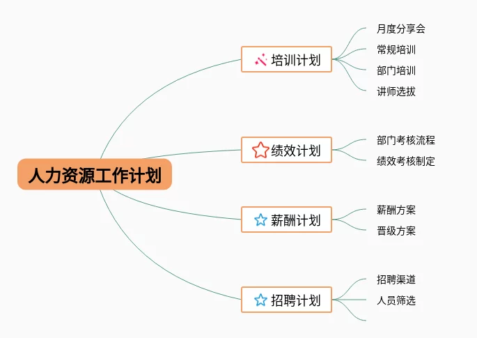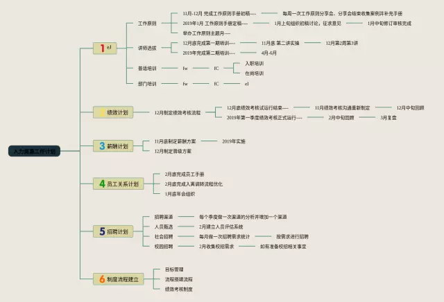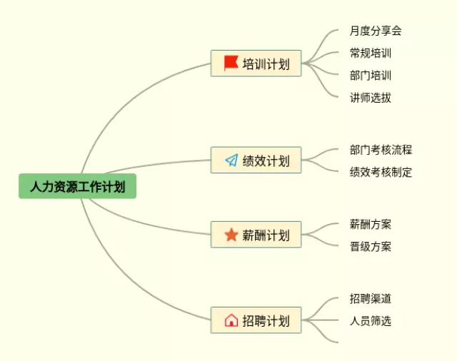 22张人力资源工作思维导图合集,人力资源工作思维导图,内容涵盖绩效计划、薪酬计划、员工关系计划、招聘计划、制度流程建立等5个部分,22张附下载,每张思维导图都非常清晰,每张图片均附下载。