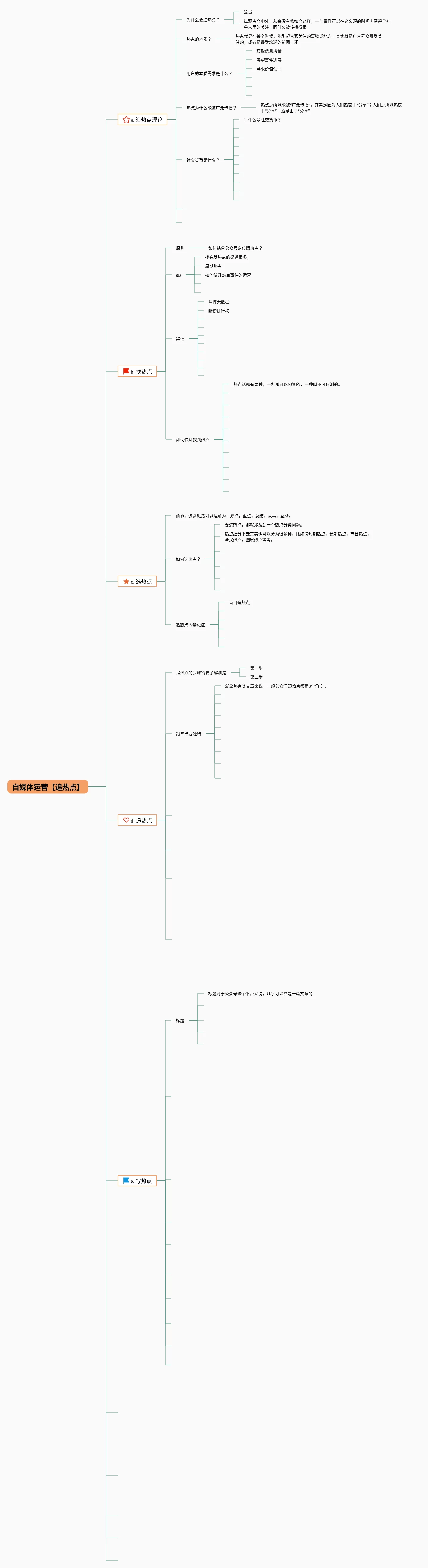 20张自媒体运营思维导图汇总,自媒体运营思维导图,内容涵盖a. 追热点理论、b. 找热点、c. 选热点、d. 追热点、e. 写热点等14个知识点,20张精选版,每张思维导图都非常简单,每张图片均精选版。