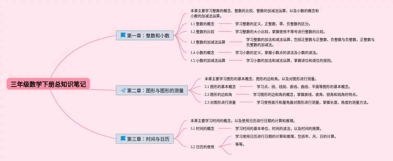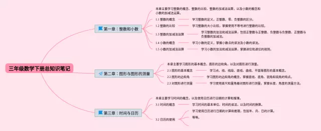23张三年级下册数学总思维导图汇总,三年级下册数学总思维导图,内容涵盖第一章整数和小数、第二章图形与图形的测量、第三章时间与日历等3个部分,23张附下载,每张思维导图都非常清晰,每张图片均附下载。