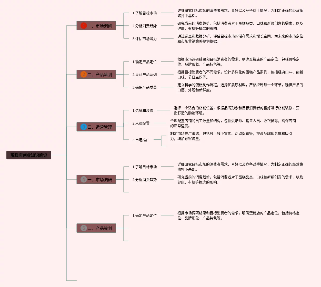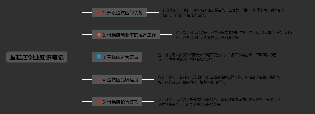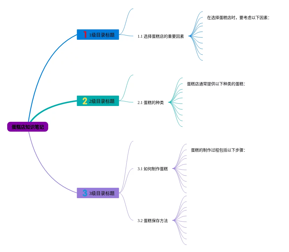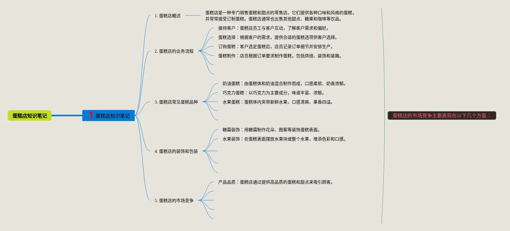 22张蛋糕的思维导图合集,蛋糕的思维导图,内容涵盖1. 开设蛋糕店的优势、2. 蛋糕店创业前的准备工作、3. 蛋糕店运营要点、4. 蛋糕店品牌建设、5. 蛋糕店销售技巧等5个部分,22张高清晰可打印,每张思维导图都非常简单,每张图片均高清晰可打印。