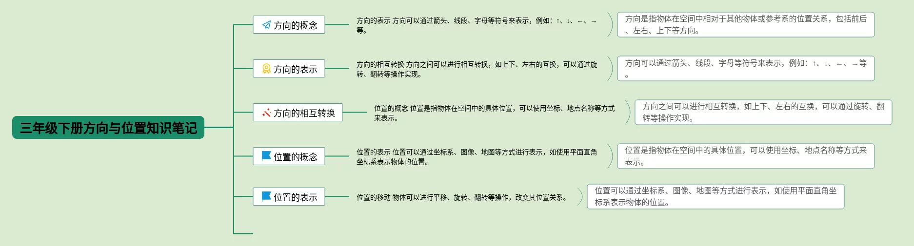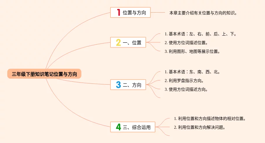 21张三年级下册方向思维导图合集,三年级下册方向思维导图,内容涵盖位置与方向、位置、方向、综合运用等4个部分,21张高清版,每张思维导图都非常漂亮,每张图片均高清版。