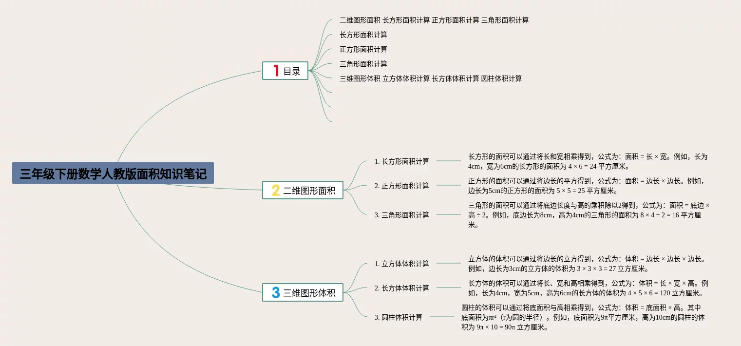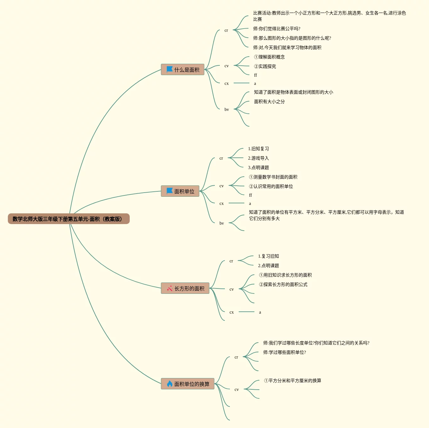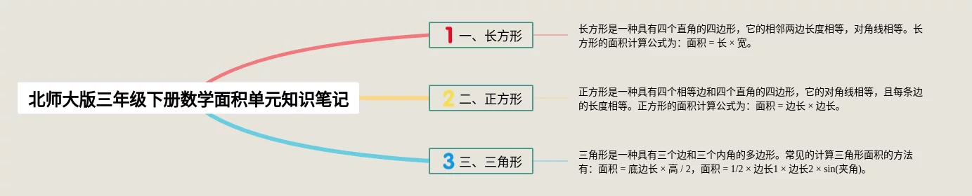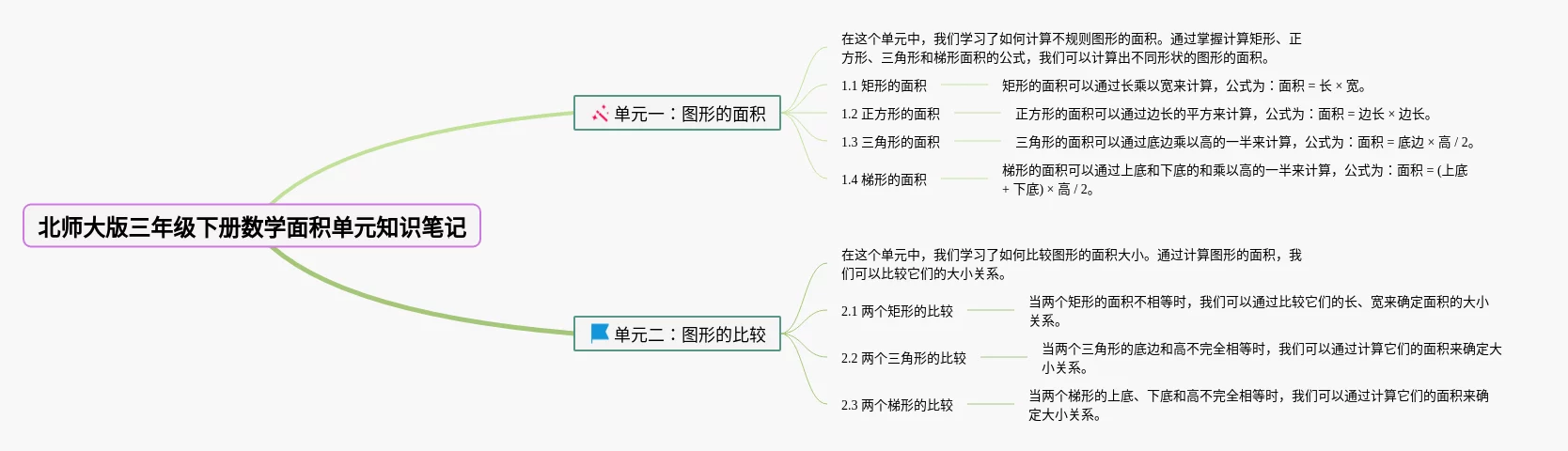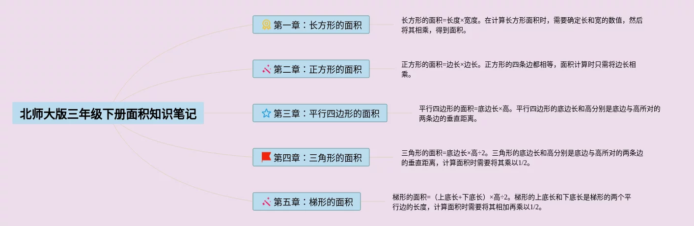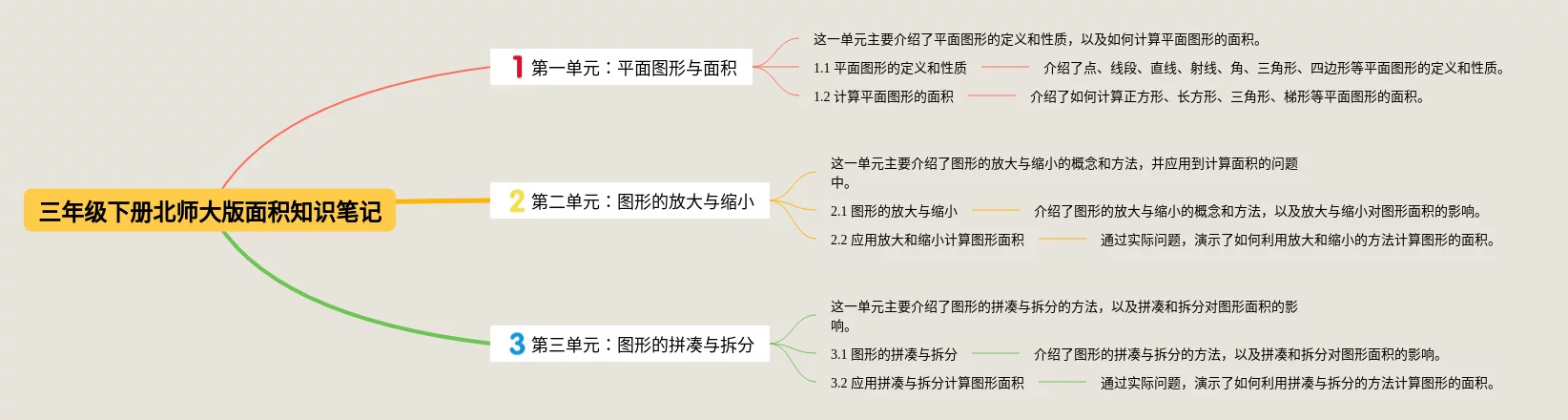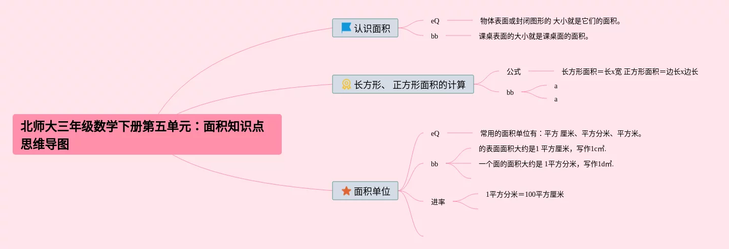 三年级下册北师大版面积思维导图(22张附下载)