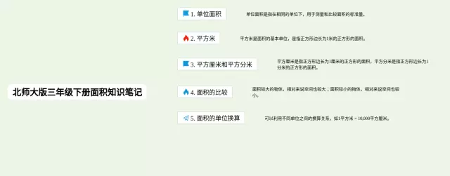 22张三年级下册北师大版面积思维导图合集,三年级下册北师大版面积思维导图,内容涵盖基础算术、图形认知、代数、几何、统计等6个要点,22张附下载,每张思维导图都非常简单,每张图片均附下载。