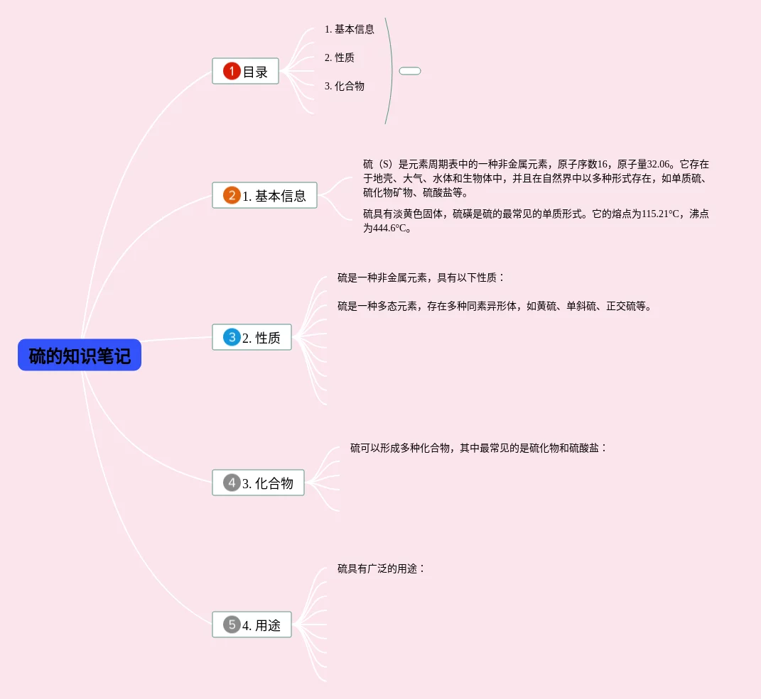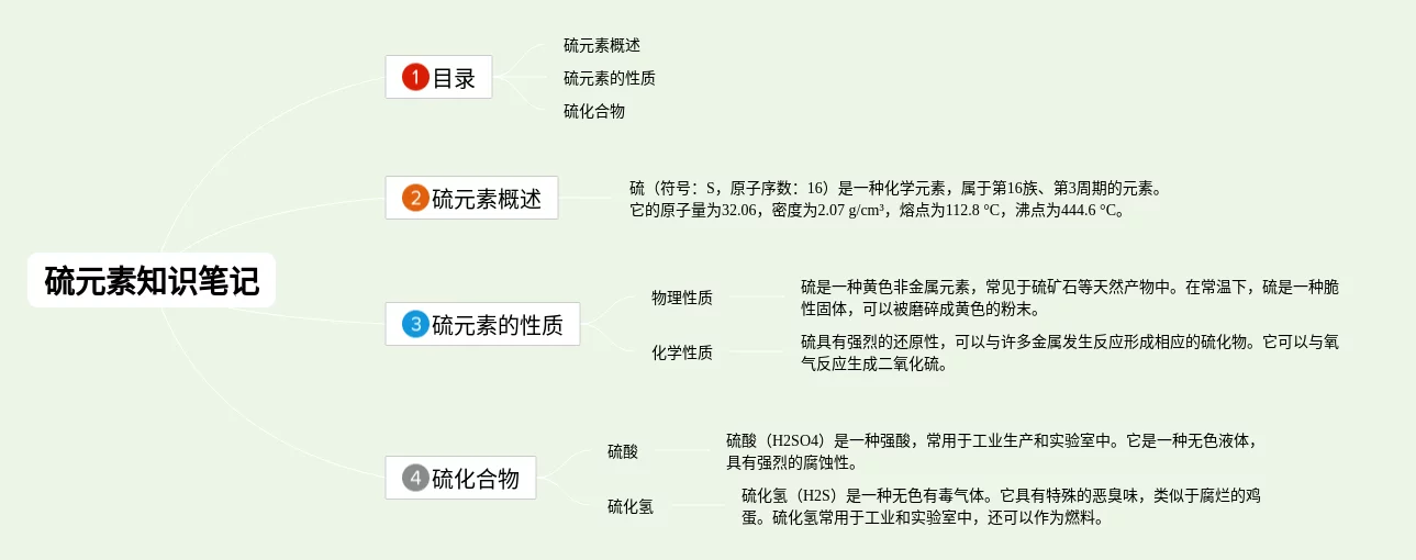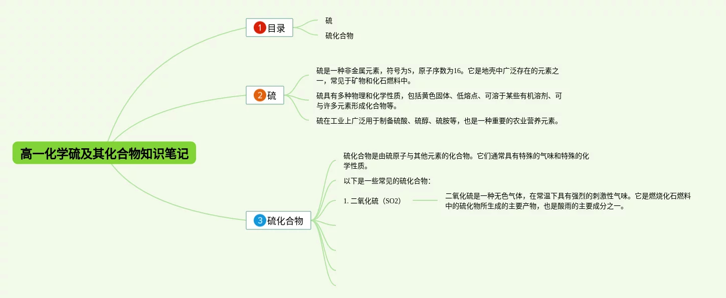23张硫思维导图高一汇总,硫思维导图高一,内容涵盖目录、硫元素概述、硫元素的性质、硫化合物等4个部分,23张可打印,每张思维导图都非常清晰,每张图片均可打印。