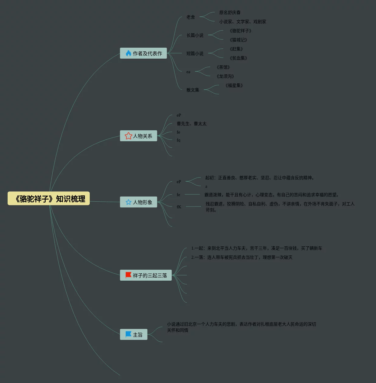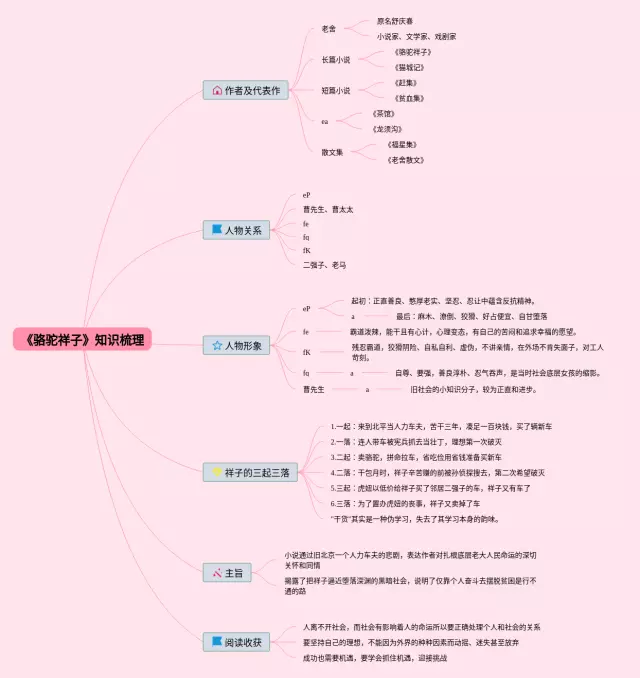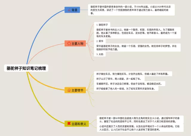 24张骆驼祥子情节梳理思维导图合集,骆驼祥子情节梳理思维导图,内容涵盖好句摘抄、读后感等2个方面,24张可下载,每张思维导图都非常清晰,每张图片均可下载。