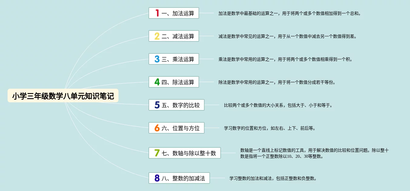 22张小学三年级数学八单元思维导图汇总,小学三年级数学八单元思维导图,内容涵盖整数与加减法、乘法与除法等2个知识点,22张值得收藏,每张思维导图都非常清晰,每张图片均值得收藏。