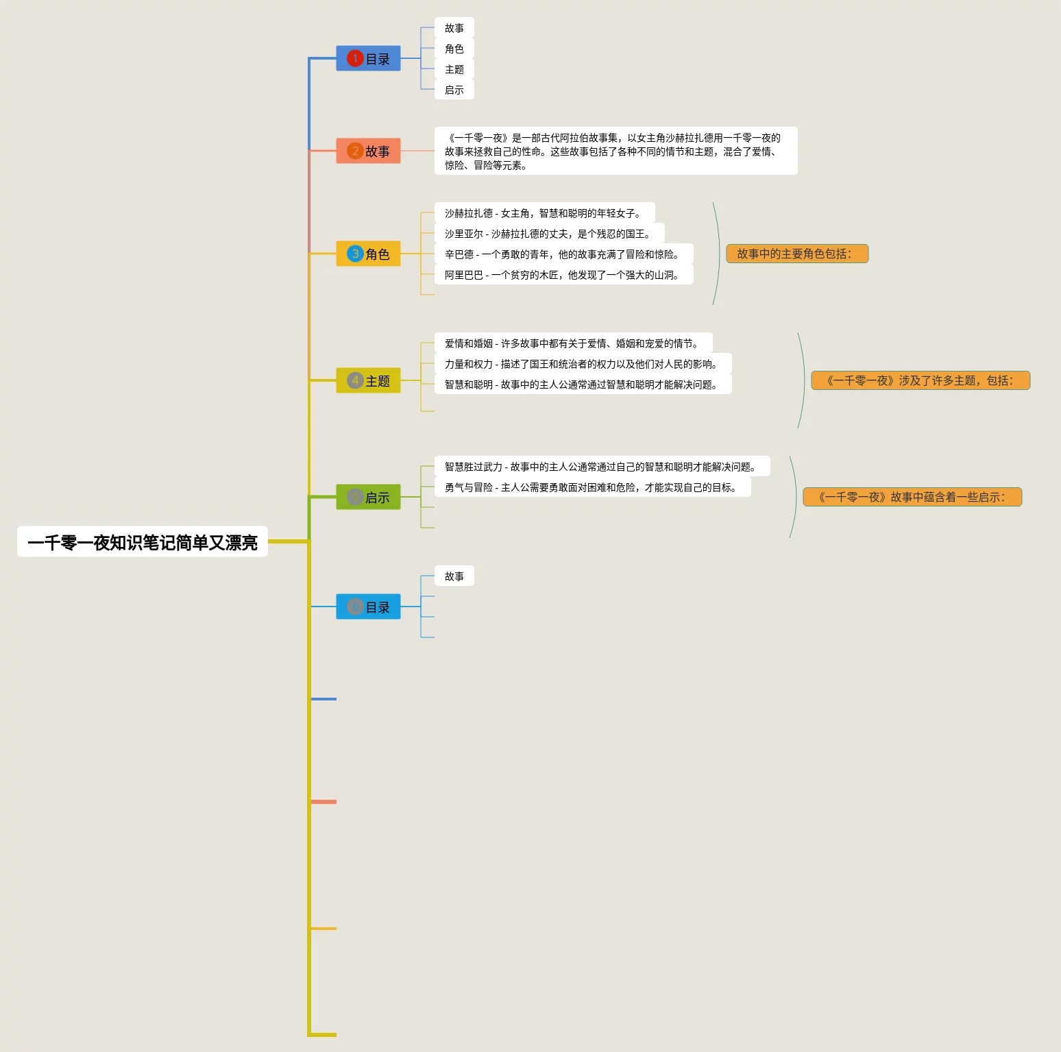 21张一千零一夜思维导图汇总,一千零一夜思维导图,内容涵盖活动目的、主题+概念 (为什么)、呈现的内容(做了什么)(怎么做)、亮点、思考等5个方面,21张精选版,每张思维导图都非常漂亮,每张图片均精选版。
