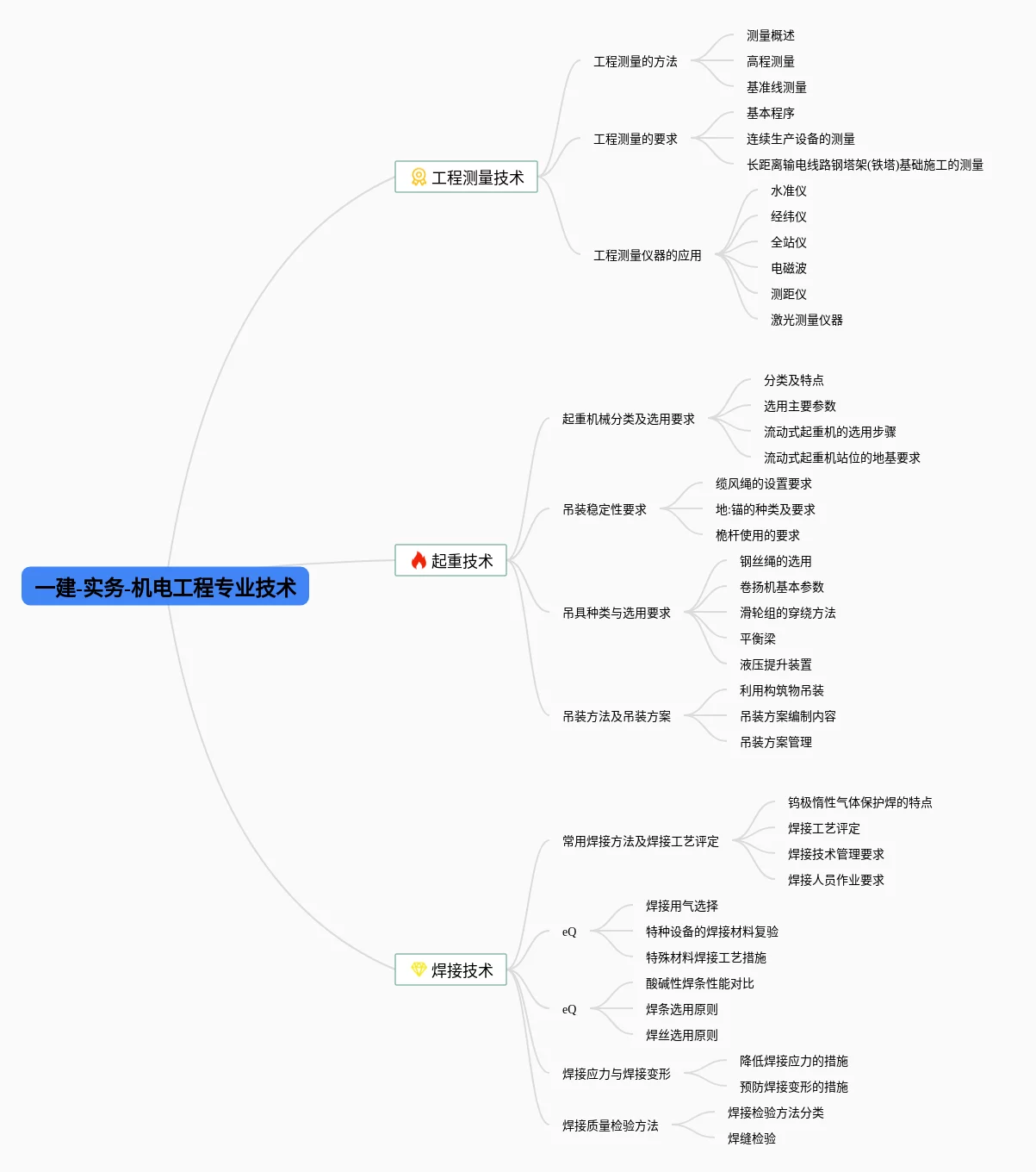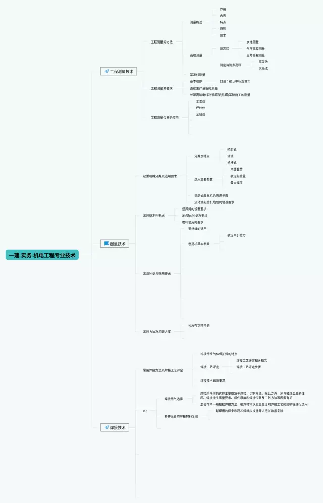 23张一建机电实务思维导图汇总,一建机电实务思维导图,内容涵盖工程测量技术、起重技术、焊接技术等3个要点,23张值得收藏,每张思维导图都非常清晰,每张图片均值得收藏。