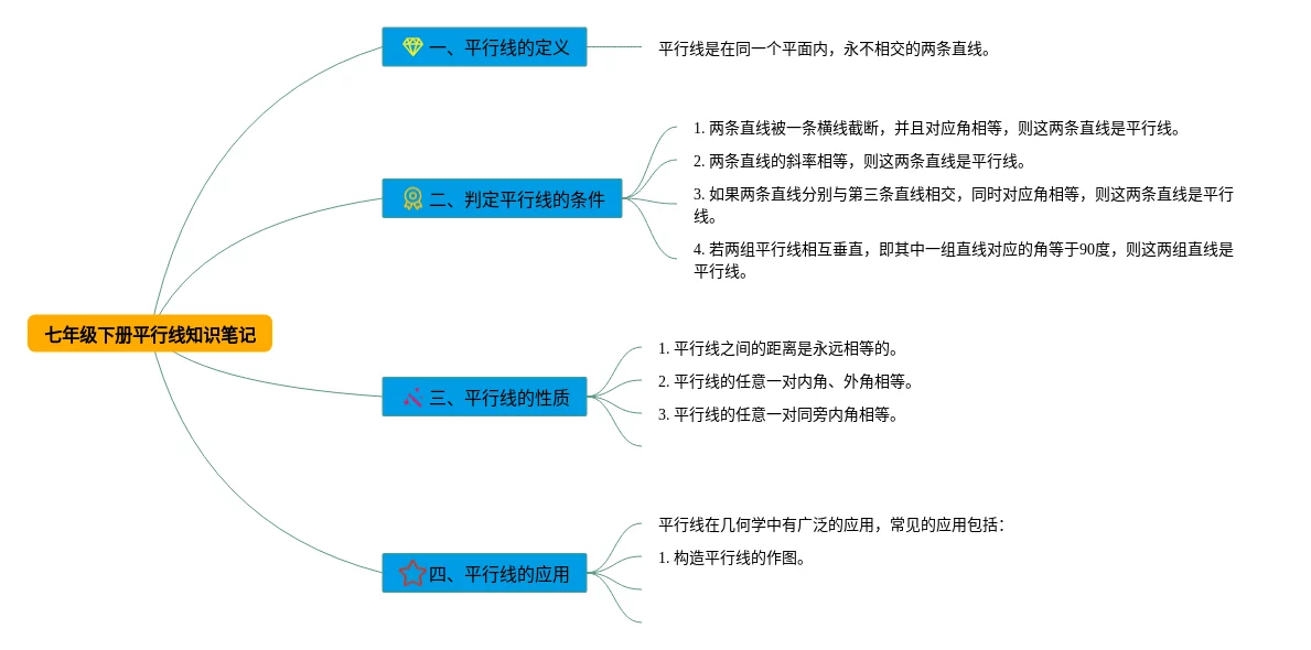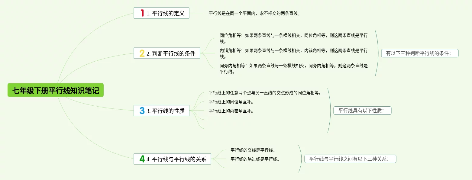 20张七年级下册平行线思维导图汇总,七年级下册平行线思维导图,内容涵盖相交线、平行线等2个部分,20张精选版,每张思维导图都非常清晰,每张图片均精选版。