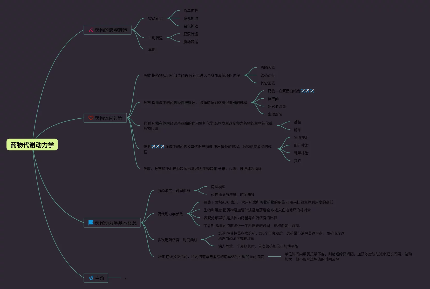 药物代谢动力学思维导图(22张可下载)
