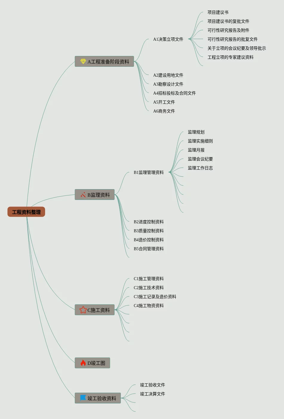 25张工程资料思维导图合集,工程资料思维导图,内容涵盖A工程准备阶段资料、B监理资料、C施工资料、D竣工图、竣工验收资料等5个方面,25张高清版,每张思维导图都非常简单,每张图片均高清版。